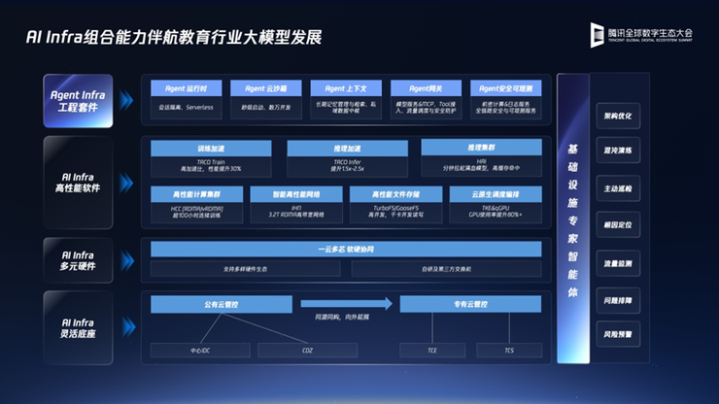 腾讯云依托在云计算、分布式存储、高性能网络领域的积累及多行业场景优化经验,推进AI基础设施升级,加速教育行业大模型应用,推动技术服务教学实践。例如,腾讯云智算团队发布的AgentInfra工程套件,将助力AgenticAI从实验室原型走向教育场景生产级落地,打通技术应用“最后一公里”。
